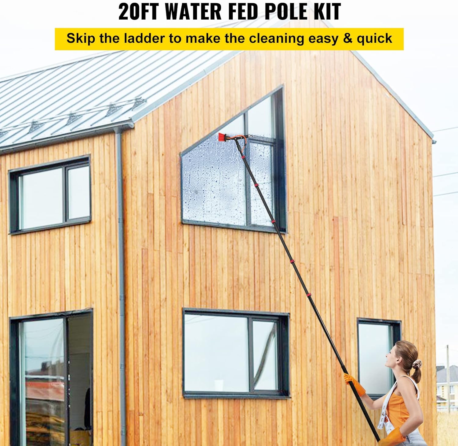 Amazon Com Happybuy Water Fed Pole Kit 20ft Length Water Fed Brush W Squeegee 6m Water Fed Cleaning System 3 In 1 Aluminum Outdoor Window Cleaner W 23 Hose Cleaning Tool For Window Glass Solar